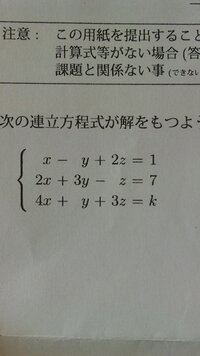 至急お願いします この連立方程式が解をもつように定数kを定 Yahoo 知恵袋